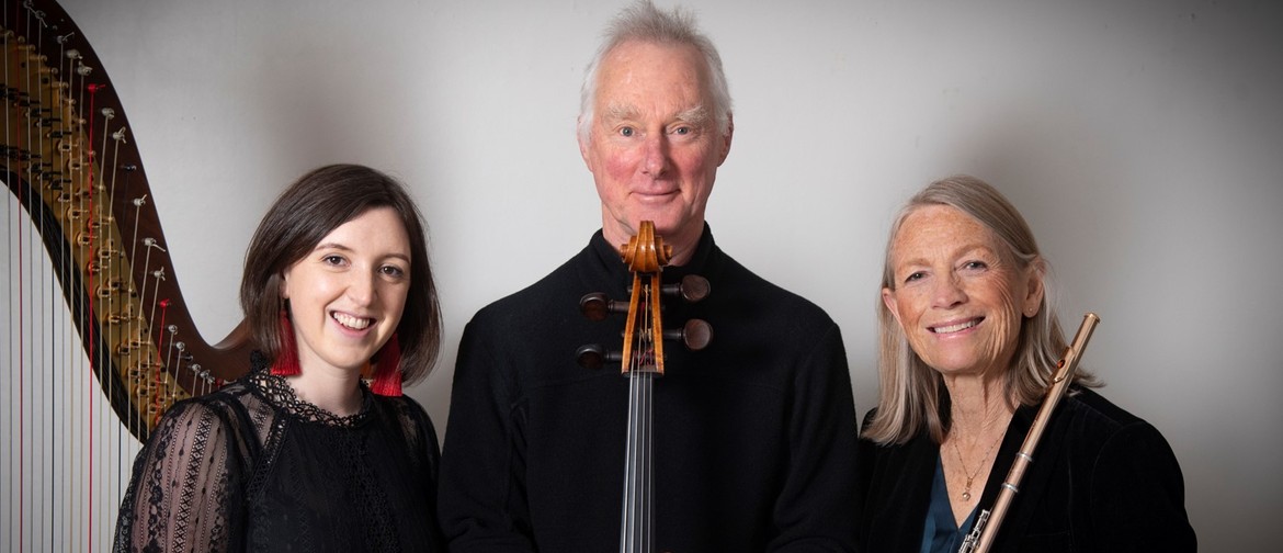 The Trio is Barbara Hill (flute), Robert Ibell (cello) and Michelle Velvin (harp).