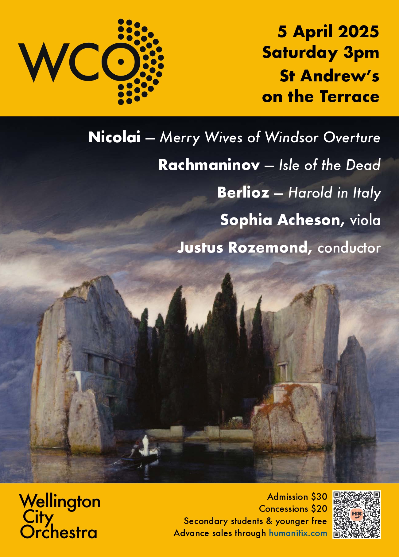 Wellington City Orchestra presents works by Nicolai, Rachmaninov & Berlioz, featuring Sophia Acheson (viola) and conducted by Justus Rozemond.