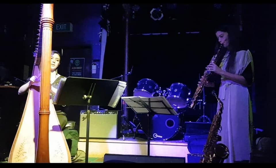 Michelle Velvin, harp, Genevieve Davidson, saxophone and Ingrid Schoenfeld, piano